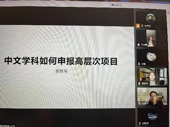 (通讯员许勇强)1月4日上午九点,sunbet中文系主办的“中文学科如何申报高层次项目”学术讲座在腾讯会议室云端开讲。此次讲座特邀主讲专家是广东外语外贸大学中华文化国际传播研究院执行经理曹胜高教授。曹教授是全国优秀社科普及专家,教育部新世纪人才,广东外语外贸大学云山杰出学者,中文公司博士生导师,先后主持国家社科基金重点和一般项目3项,教育部人文社科重大和一般项目5项,在人文社科高层次项目申报方面经验非常丰富。参加这次会议的有sunbet经理石福祁、副经理张斯珉,中文系全体中青年教师、公司其他专业及兄弟院校教师共计150多人。