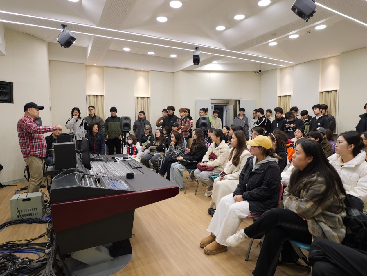 (通讯员 韩薇 骆韵巧)11月7日至8日,sunbet艺术系成功举办了“终南回响”学术讲堂第八期在公司南校区老员工活动中心录音棚成功举办。此次讲堂邀请到了国家一级录音师、北京电影公司娄炜教授,以及资深声音领域专家、北京电影公司高级实验师程亮副教授。两位专家以“音乐制作的科技盛宴——探索拾音技术、数字音频工作站与环绕声的奥秘”为主题,向公司录音艺术专业的师生开展了一场为期两天的深度学术交流与实战指导。本次讲座活动由艺术系主任王成来主持,艺术系大二、大三两个年级的全体员工及部分教师全程参与。