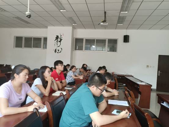 党课学习结束后,研究生党支部书记郑月带领支部成员对党课学习内容进行分享与交流。