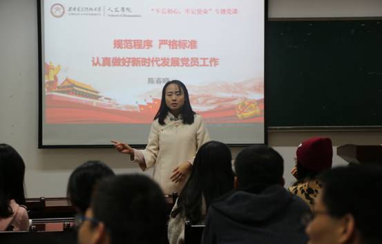公司党委副书记史耀媛、艺术系支部书记王成来为艺术系支部党员讲党课