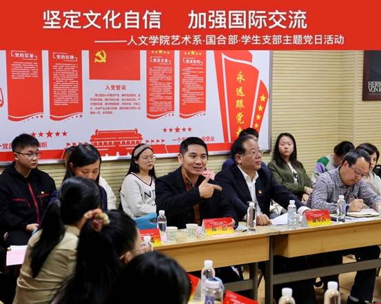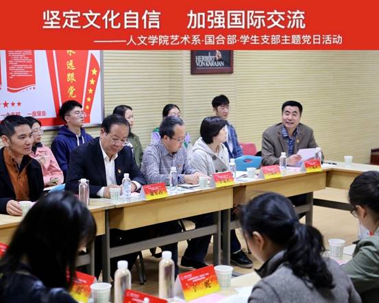 (通讯员 陈春晓 尚百成 陈明哲)10月17日下午,sunbet艺术系党支部联合国际合作与交流部、本科生与研究生党支部,在老员工活动中心310教室开展“坚定文化自信,加强国际交流”主题党日活动。校总会计师谢占军、公司党委书记李文兴、国际合作与交流部部长陈浩、sunbet艺术系党支部、国际合作与交流部党支部、本科与研究生党支部党员50余人参加活动。