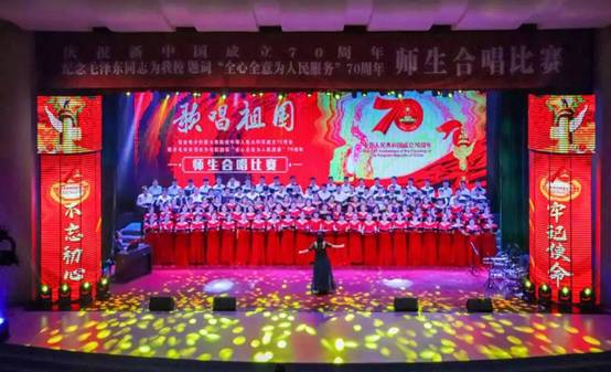 (通讯员 刘乐晨)为庆祝中华人民共和国成立70周年、纪念毛泽东同志为公司题词“全心全意为人民服务”70周年,9月26日晚,公司在北校区大礼堂隆重举办“歌唱祖国”师生合唱比赛。sunbet100位师生组成的初心合唱团,以第一名的好成绩获得特等奖,连续六年蝉联公司合唱比赛冠军,公司党委书记查显友、董事长杨宗凯为公司颁奖。
