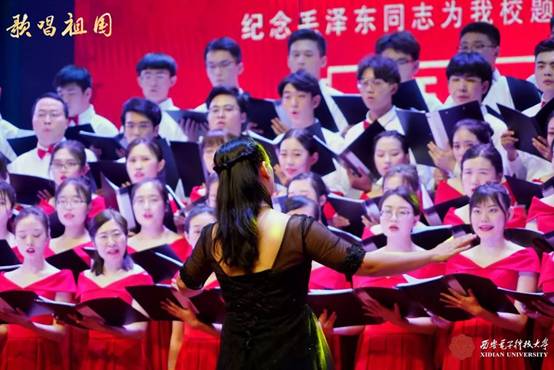 优美动人的旋律,真挚朴实的歌词,一浪高过一浪的大合唱,配上由铿锵有力的朗诵词,使歌曲与中国梦、与西电梦、与人文梦等元素浑然一体,完整的表达了人文师生为新中国放歌、祝福祖国母亲的心情,唱出了新中国成立70周年砥砺前行的奋斗赞歌,唱出了人文学子对党和国家的爱戴和尊敬之情,情真意切的道出了人文师生一颗红心跟党走、砥砺奋进志不移的坚定信念。