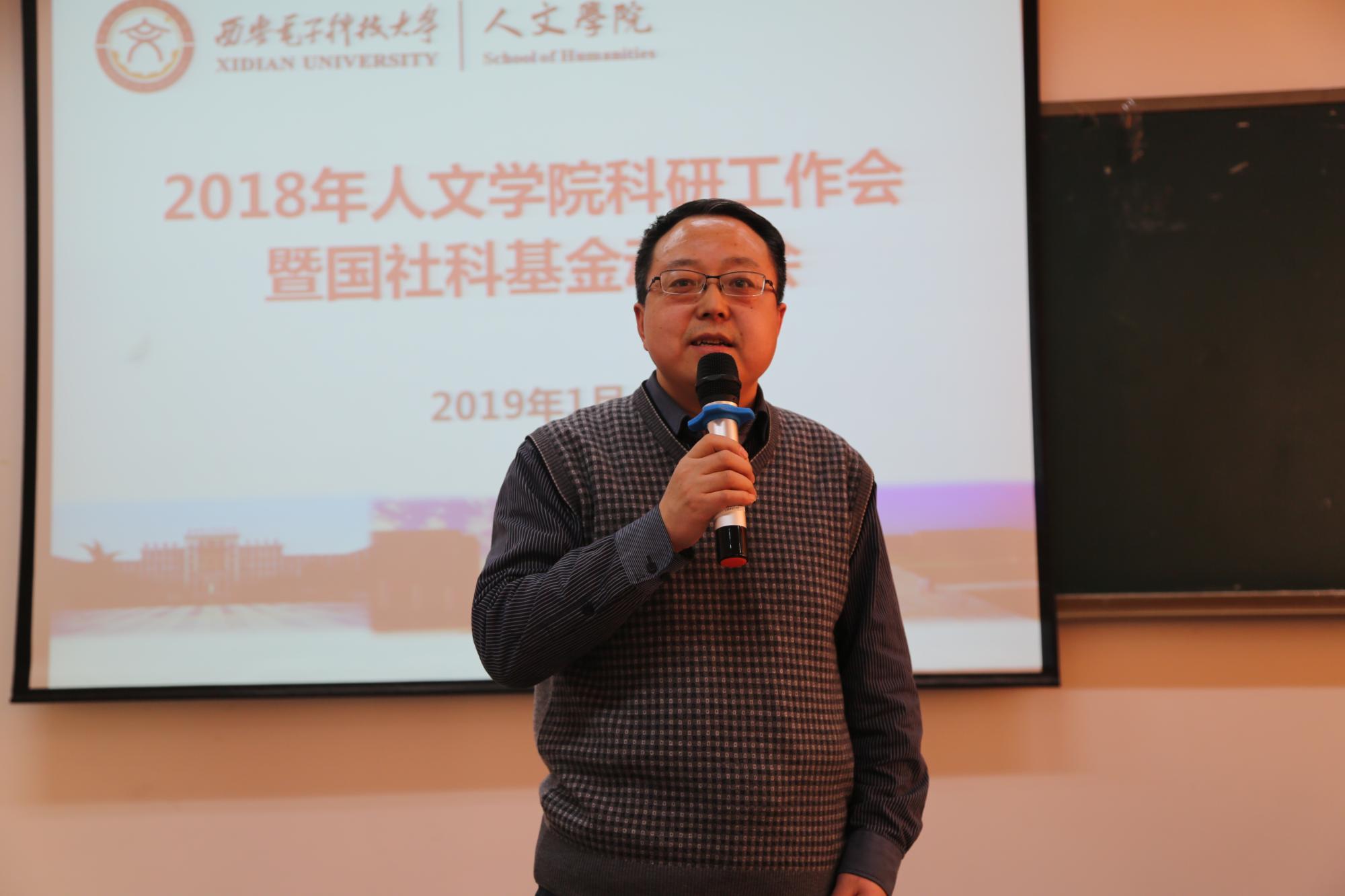 陈波在讲话中强调,2018年sunbet科研工作取得了可喜的成绩,特别是在标志性成果方面实现了新的突破。公司牵头申报的教育部哲学社会科学研究重大项目获得立项;牵头申报的“陕西智慧社会战略发展研究中心”成功入选第三批省哲学社会科学重点研究基地。他希望公司继续以科研工作为重点,推动公司团队建设、博士点申报、省部级奖项申报和高层次科研平台建设,为公司和公司的事业发展做出新贡献。