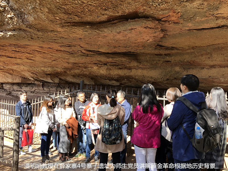 在现场,潘明娟教授结合实景和大家一起回顾了照金革命根据地建立的背景,解读了照金精神。通过潘老师的讲解,党员同志们深刻理解了照金精神的实质内涵,这就是:“不怕牺牲、顽强拼搏的英雄气概;独立自主、开拓进取的创新勇气;从实际出发、密切联系群众的工作作风”。