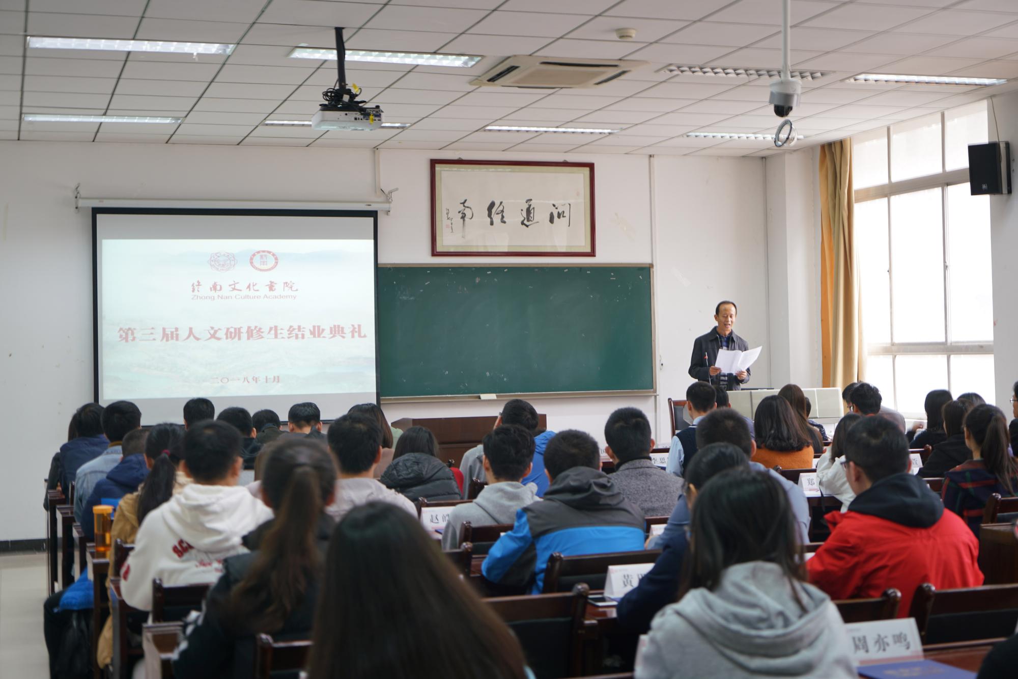 (通讯员 穆宏浪)2018年10月21日下午,终南文化书院第三届人文研修班结业典礼在南校区信远楼二区106报告厅隆重举行。终南文化书院班主任郁志强宣读了《关于准予终南文化书院李斯贤等100名第三届人文研修班学员结业的决定》。