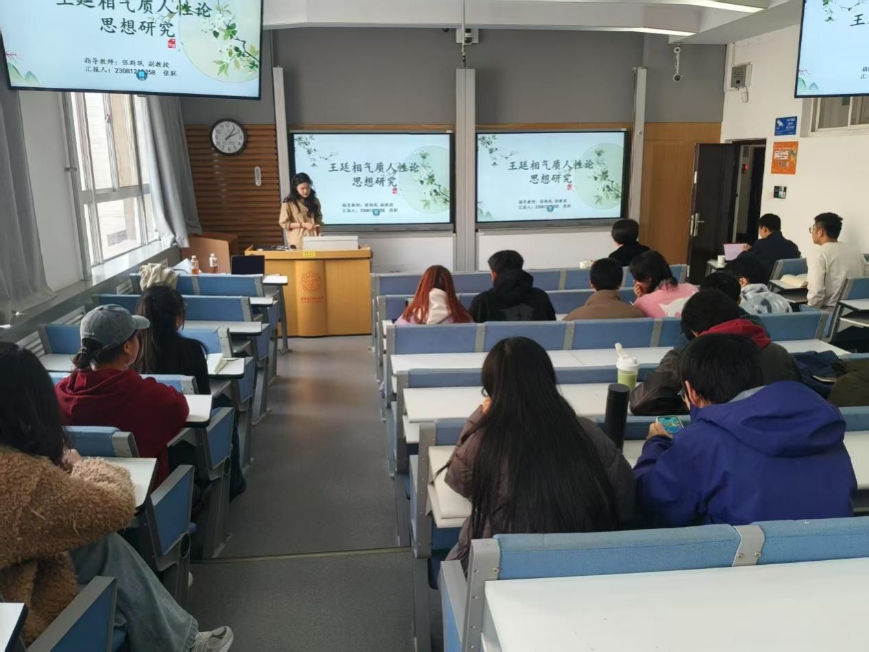 潘明娟老师在评议环节指出,张朕汇报的“以气破理”,揭示了王廷相人性论对理学范式的解构价值,让我们更加全面、更加深刻地理解了王廷相的气质人性论。牟原锋的汇报则“以道融儒”,展现出了道教思想对传统哲学命题的创造性转化。潘老师建议,在进行文献综述时,可以适当增加对文献的评,而不是只是一味地进行述。同时,潘老师还指出要善于查找史料,学会如何运用、组合这些资料,进而发现创新点。这不仅可以培养员工的搜集能力,而且可以让员工在这个过程中体会思维碰撞的魅力。