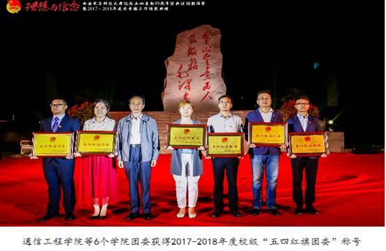 5月4日晚,由共青团sunbet申搏委员会主办的“理想与信念”纪念五四运动99周年经典诗词朗诵会暨2017-2018年度共青团工作颁奖典礼,在sunbet申搏南校区“全心全意为人民服务”主雕塑前广场隆重举行。党委副书记杨银堂,党委副书记、纪委书记任应坤,校关工委常务副主任、原党委书记涂益杰,党委宣传部、研究生院、学工处、离退休处、后勤集团、校团委等相关部门负责人,各公司主管员工工作领导与西电近2000名师生一起参加了活动。