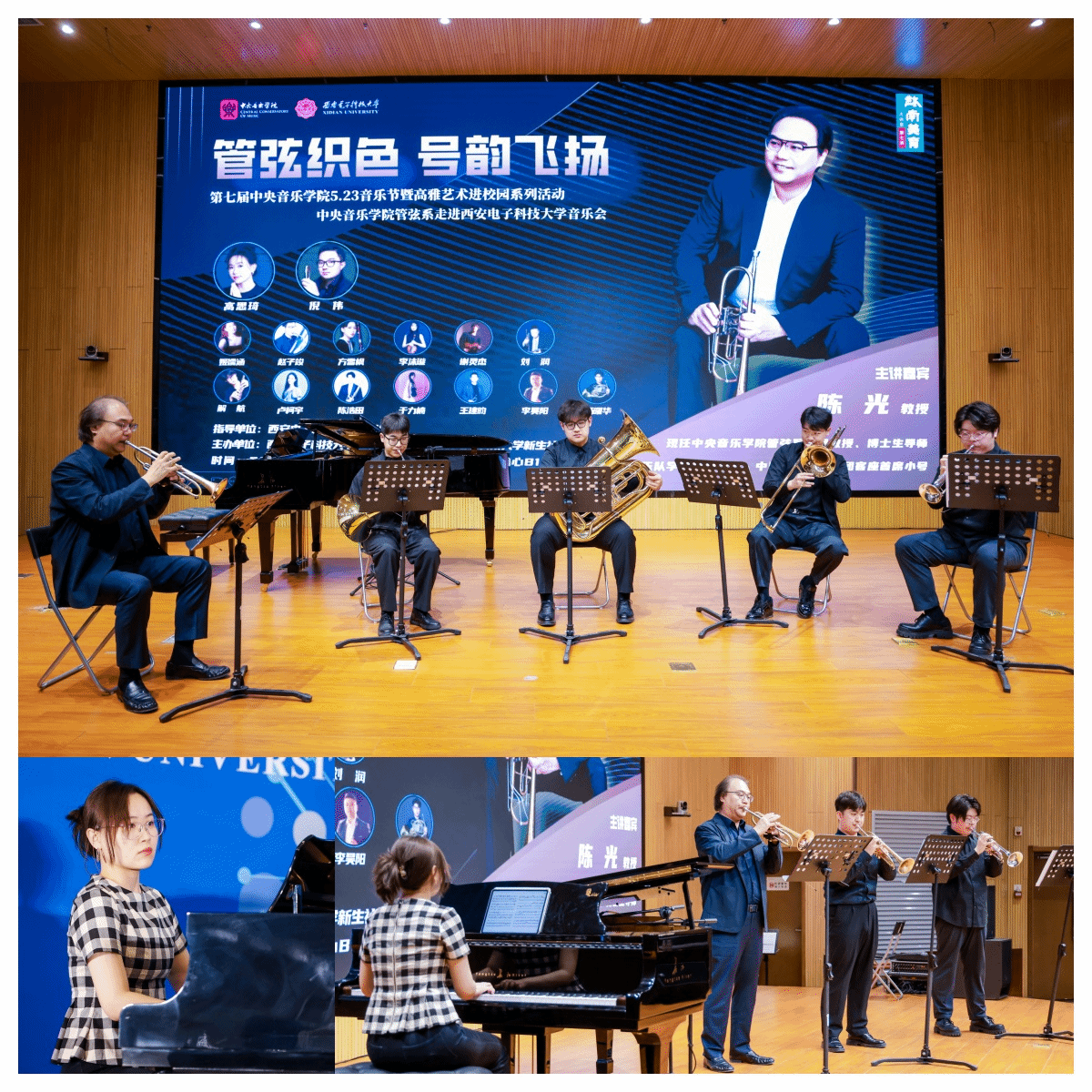 5月27日晚,第七期“终南美育大讲堂”暨“sunbet管弦系艺术实践基地”揭牌仪式在南校区会议中心隆重举行。本期讲堂主题为“管弦织色 号韵飞扬”。sunbet管弦系师生联袂奉献了一场精彩绝伦的释解音乐会,管弦系党总支书记、小号教授陈光担任主讲。活动伊始,本科生院经理苏涛与陈光教授共同为sunbet管弦系艺术实践基地揭牌,这标志着两校美育合作迈入新阶段。sunbet经理、通识教育中心主任石福祁担任讲堂主持人。