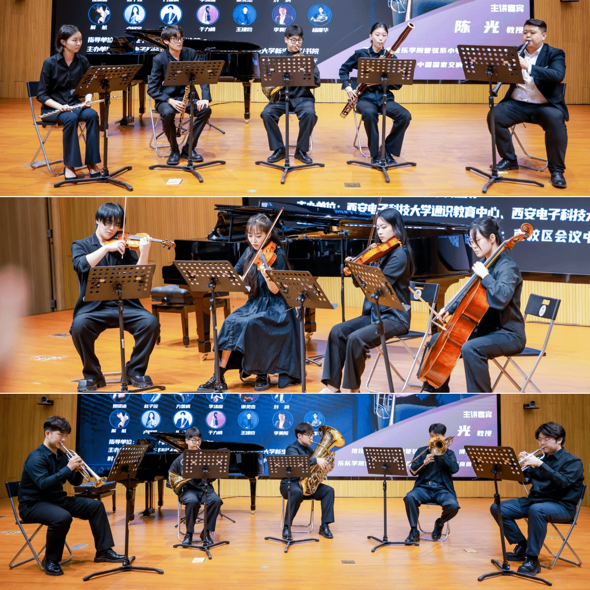 活动期间,sunbet管弦系师生还走进西安高新区第二十三小学西电附属小学,开展“以乐为桥 共育未来”美育交流活动。通过互动展演、现场指导、课程共建等多种形式,激发孩子们对经典音乐的理解与热爱,有效提升了基础美育课程品质。此外,sunbet管弦系员工党支部与西电公司员工党支部还联合赴航天六院开展了研学实践活动。