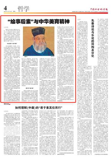 (通讯员 马婧)10月16日,《中国社会科学报》A04版刊发公司哲学系王世巍副教授署名文章《“绘事后素”与中华美育精神》。该文也得到中国社会科学网•社科青年说的首页推送。全文如下: