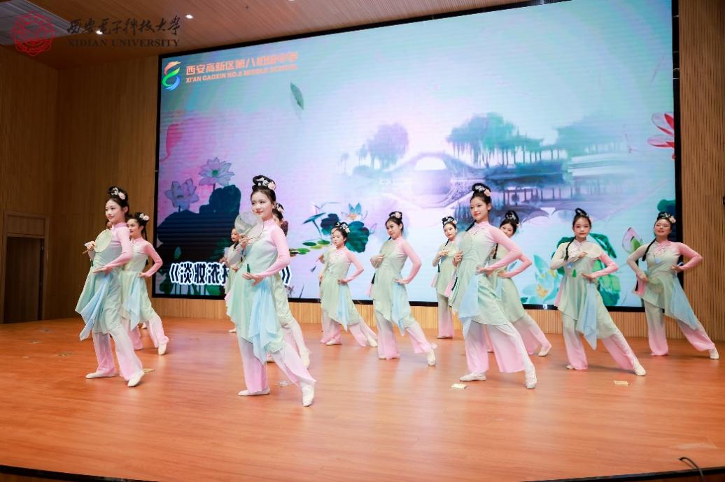 比赛现场,为创新大赛形式,活跃大赛氛围,高新区第八初级中学的员工和sunbet艺术系员工分别表演舞蹈《淡妆浓抹总相宜》和古筝合奏《盛世国乐》。