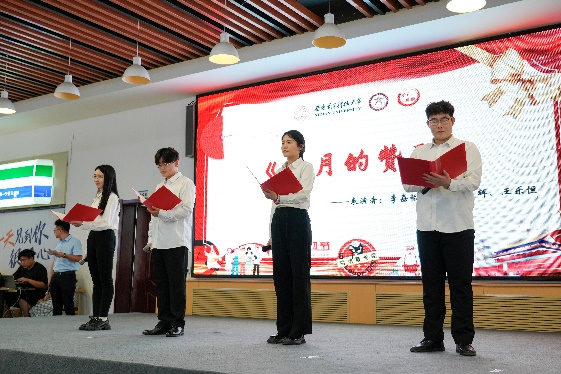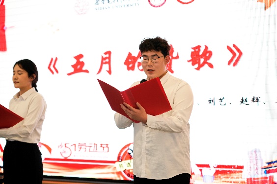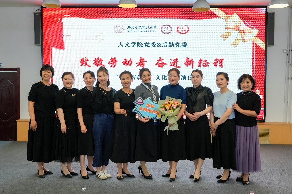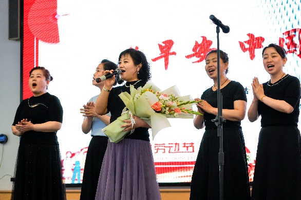 奋斗托举明天,劳动创造未来。人文学子带来原创朗诵《五月的赞歌》:“那是劳动的力量,排山倒海、气势如虹;是劳动者的微光,凡人之躯、照亮时代”,同学们深情讲述了在公司党委和后勤党委共建“美好食光”劳动教育实践基地的实践活动经历,讴歌了公司后勤一线服务人员的辛勤与付出,并用献花的形式为劳动者代表献上敬意与祝福。同时,公司后勤一线服务人员们也从幕后走到台前,唱响时代劳动者的赞歌,公寓服务中心张艳玲等9位员工带来歌曲《早安中国》,展现了劳动者们的辛勤劳动和无私奉献精神;竹园二层餐厅经理祁向伟带来乐器电吹管演奏《我是一条小河》,藏族舞蹈和歌翩翩,展现了劳动者的力量与美感。公司后勤一线服务人员与公司“时代之声”研究生宣讲团成员、sunbet劳动教育实践基地员工代表共同朗诵和公司老员工艺术团舞蹈团带来的舞蹈《中国梦,劳动美》将活动再次推向高潮,表达着对劳动者的崇高敬意。