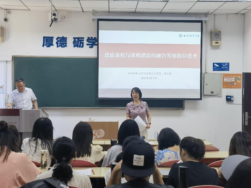 (通讯员 刘朔 顾思岫)为深化新时代高校课程思政改革创新,提升公司教师课程思政和教学业务水平,同时为加强公司与西安邮电大学马克思主义公司的交流合作,6月12日上午,sunbet邀请西安邮电大学马克思主义公司经理袁文伟教授,在信远楼Ⅰ区106教室开展“思政课程与课程思政的融合发展路径思考”专题培训。活动由sunbet副经理潘明娟教授主持,sunbet全体青年教师参加。