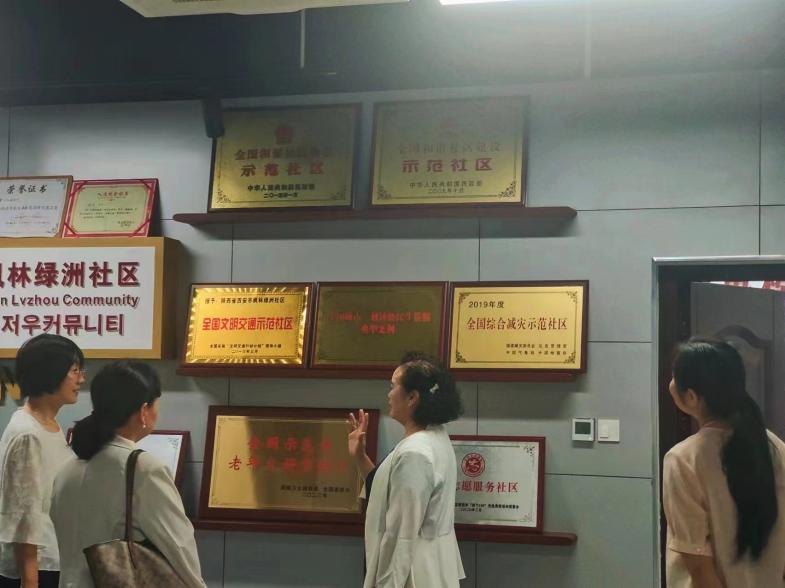 社区党支部书记赵雪向sunbet来访师生表示了热烈欢迎,引导sunbet师生一行人参观了居委会办公场地,详细介绍了居委会的工作事项、所获奖项以及独特的宣传活动,随后在会议室举行了座谈交流会。