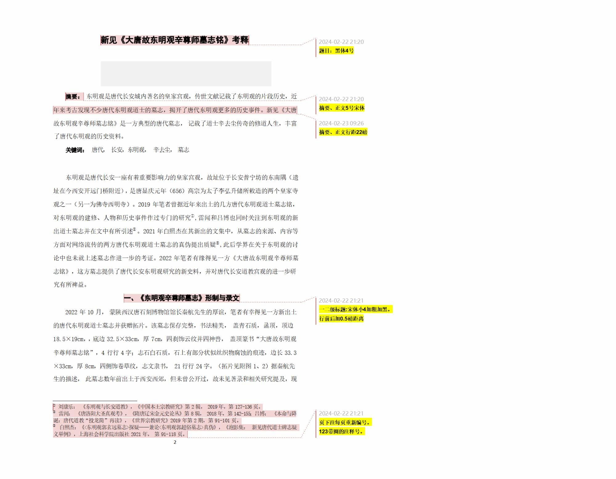 请收到论坛邀请函后,填写回执并于 2024年3月20日前返回。2024年4月 20日之前惠赐参会论文(word 文档电子本)至zhongnanshixue@163.com信箱, 论文格式以《历史研究》文献引证标注方式为准。格式样例详见附录。