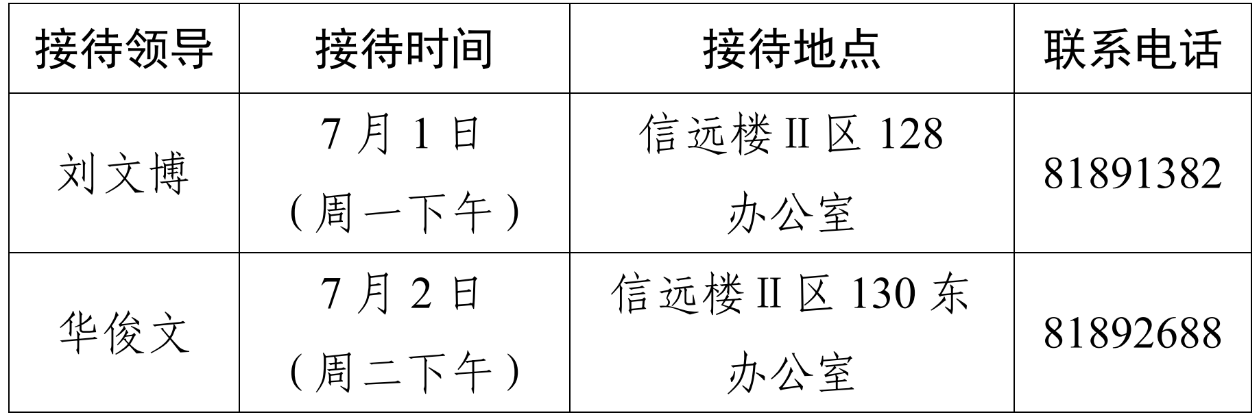 根据《sunbet领导班子接待日制度》精神,每周安排两位公司领导接待师生。现将7月1日-5日公司领导接待安排公布如下: