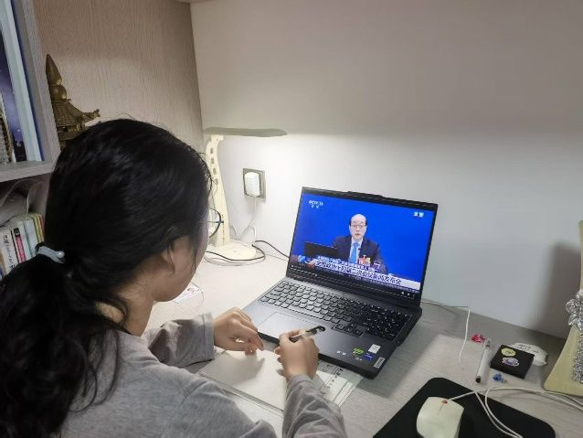 哲学系党支部教师党员王思琛:李强总理的政府工作报告,总结了2024年全民经济社会发展主要目标顺利完成,“进”的步伐坚实有力,“稳”的态势巩固延续。作为一名青年教师,刚刚从员工“进”入了教师身份,希望可以在2025年继续保持前进的步调,完成好本职教学科研工作。此外,人工智能的浪潮席卷而来,我们勇于拥抱人工智能,将数字技术赋能教学、赋能科研。