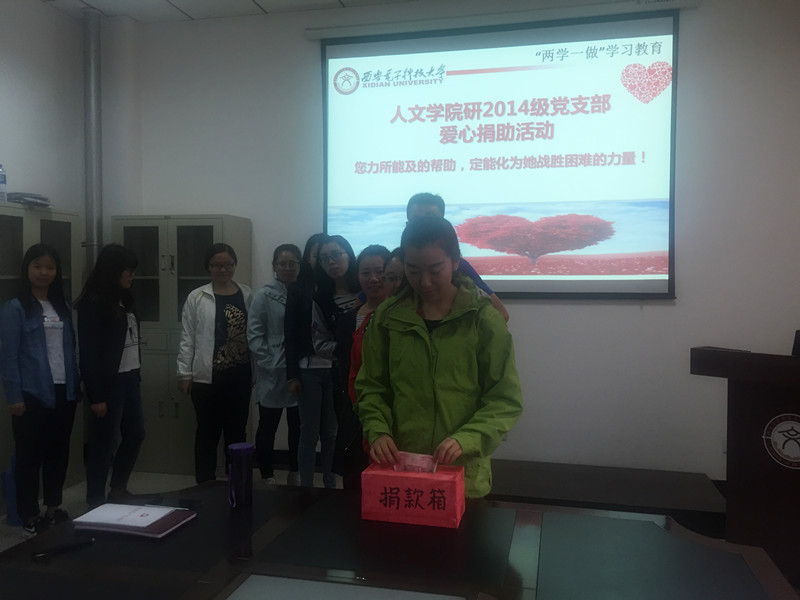 排忧解难、无私奉献、雪中送炭一直是党内坚持的优良传统,也是“两学一做”学习教育抓住“做”的关键的重要体现。研140801党支部的党员听闻自己的学妹因父重病,原本拮据的农村家庭陷入了绝境这一消息后,纷纷表示要伸出援助之手,积极奉献爱心,帮助同学渡过难关。在公司党委发出了爱心捐助倡议后,研140801党支部在班群里热议如何帮助身边同学、纷纷表达对学妹的关心和关爱。有曾在西京医院工作的研究生党员同志,主动要求帮忙联系转院,介绍最好的医生帮助救治,其他同学表示要爱心捐助,提供力所能及的支持与关心,帮助原本充满希望的家庭渡过危难。在捐款的过程中,班里其他非党员同学闻讯后纷纷赶来慷慨解囊,施以援手。