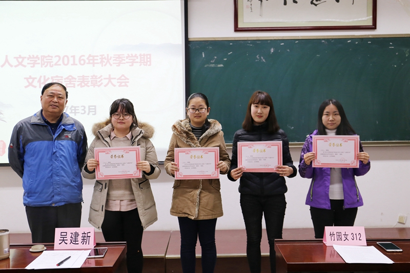 在相互参观优秀文化宿舍的基础之上,各宿舍结合自身特点自主设计建设方案,提升了各宿舍文化层次水平,浓郁了学风,创造了干净整洁的卫生环境,养成了良好的学习生活习惯,形成了积极向上的宿舍风气。经过员工会的督促、检查和验收,为表彰先进,树立典型,最终评选出1#I-304等四个宿舍获得一等奖,13#601等五个宿舍获得二等奖;对唐子杰等79名同学进行通报表扬,并将在综合测评中给予相应加分及推优入党时作为一项基本考核条件,陈春晓、吴建新分别为二等奖、一等奖获得者进行颁奖。随后获得一等奖的四个宿舍代表依次上台展示宿舍风采。