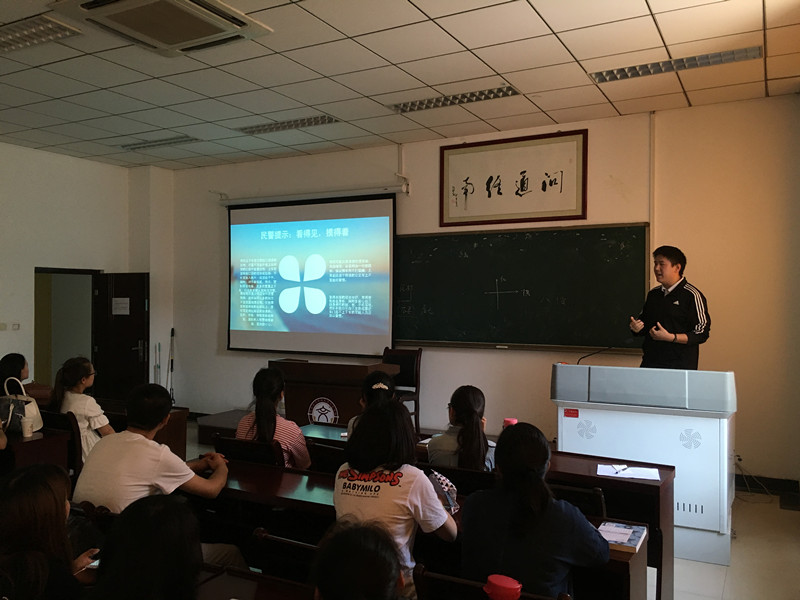 首先倪东讲述了最近同学们外出时财物频繁失窃的情况,提醒同学们必须加强防范意识,尽量避免外出财物被窃。随后,被盗员工邢家伟根据对报案后反扒民警的详细咨询,向同学们介绍了公交车盗窃的四种常见形式,即上下车时趁乱偷窃、在座位上用刀片割窃、对目标站立贴靠进行扒窃、用工具较远偷窃四种方式;随后邢家伟为同学们介绍上述几种偷窃方式应当如何应对,以防止被窃,邢家伟总结为六个字“看得见摸得着”,在车站等候时尽量不要暴露财物及手机,坐车时一手抓栏杆一手握财物等方法十分有效;最后,邢家伟以亲身经历为大家介绍了处理流程,切忌与窃贼发生正面冲突,若第一时间察觉应记住窃贼身体特征并及时报警。